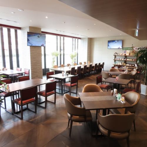 【カジュアルなテーブル席】大きな窓から外の景色が一望できる開放的なお席は気持ちよく差し込む日差しの中でお友達やご家族とのランチタイムに。様々なスタイルのテーブル席をご用意しておりますので、ごゆっくりとお過ごしください。